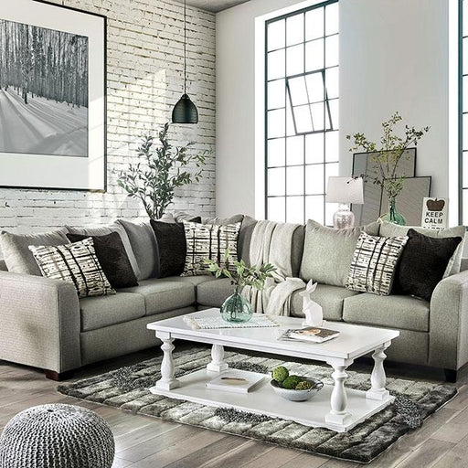 Basie Gray Love Seat, 68"L X 37"W X 42"H, 123lbs. A slightly modern color palette gives this sofa collection a hint of contemporary charm that make...
