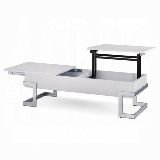 View full detailsMarcia Wood Rectangular Lift Top Coffee Table White High Gloss and Chrome