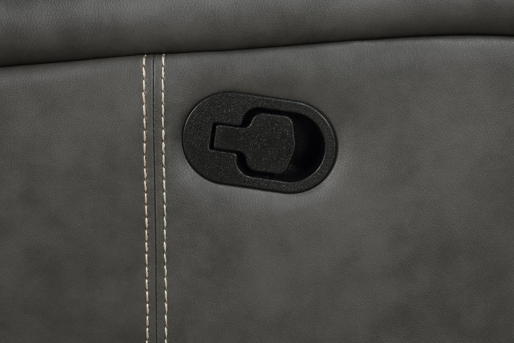 Merging the classic style of both contemporary and transitional design schemes, the recliner creates a dreamy venue for relaxing. The trending look of smooth grey leatherette upholstery with vertical topstitching delivers decorative elements and a dimensional impact. This recliner features foam padding on its frame and a pocket coil spring seat cushion, as an attached back cushion is capped with an ultra-plump headrest. Recline into varying positions using a manual control function, and enjoy space efficiency with its wall-hugger design. This recliner chair offers the perfect blend of stylish updated aesthetics and an ultimately cozy seating venue.
