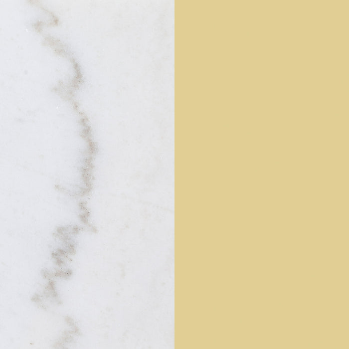A luscious look, this modern coffee table creates a glamorous aura with its sleek glass and white marble elements. The round smoked tempered glass top rests upon a gleaming white marble shelf, bringing sophistication to any living room. The gold electroplated chrome metal frame, with slim, straight legs, adds a rich, polished finish. The table features crossing stretchers beneath the glass top for added distinction, offering both style and functionality in a luxurious, modern design.